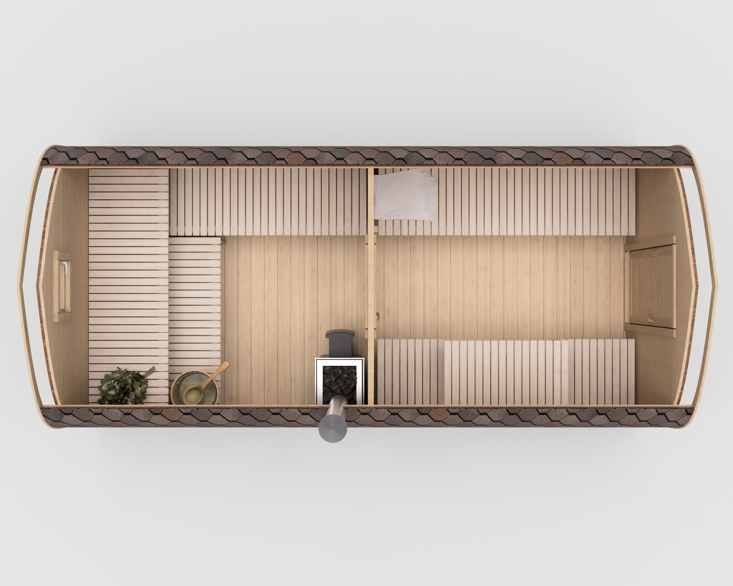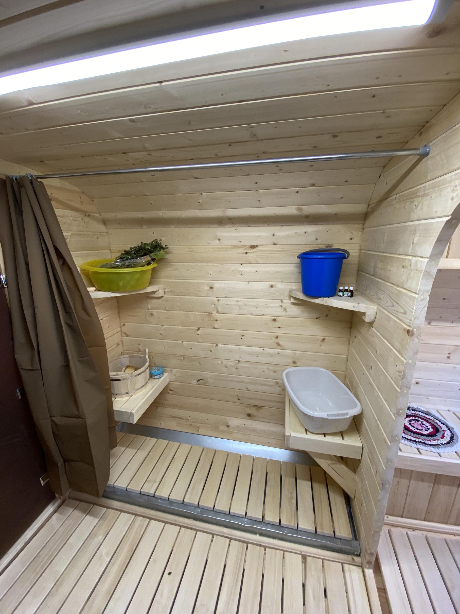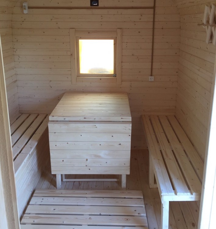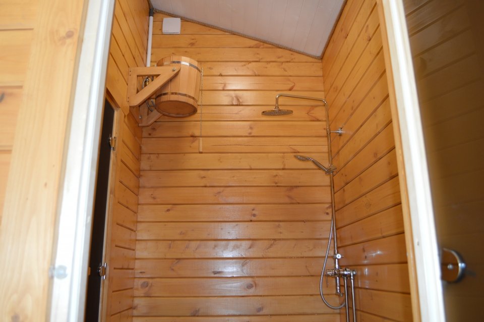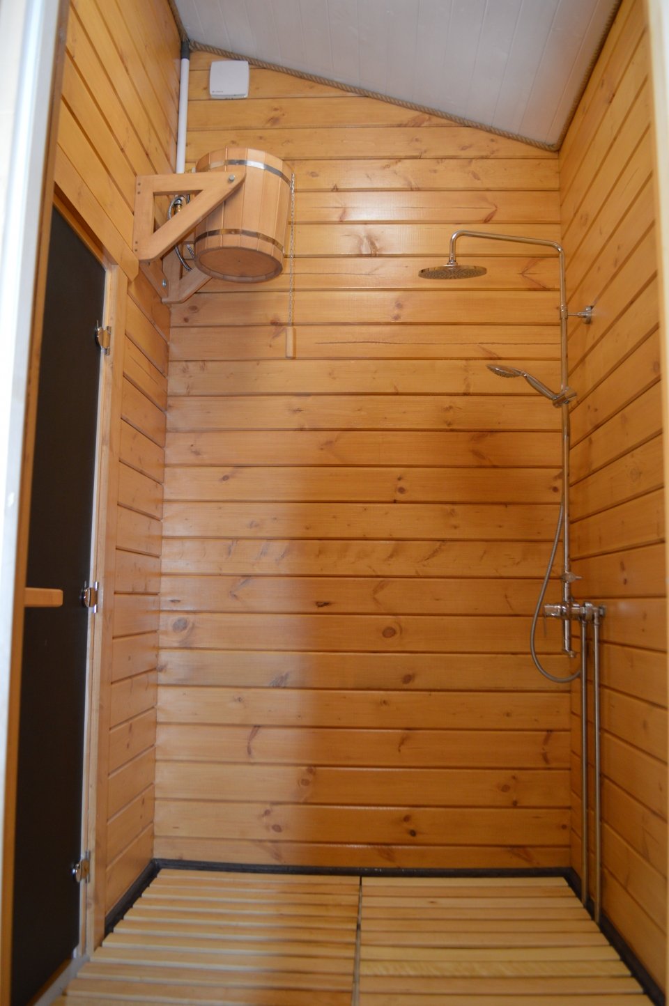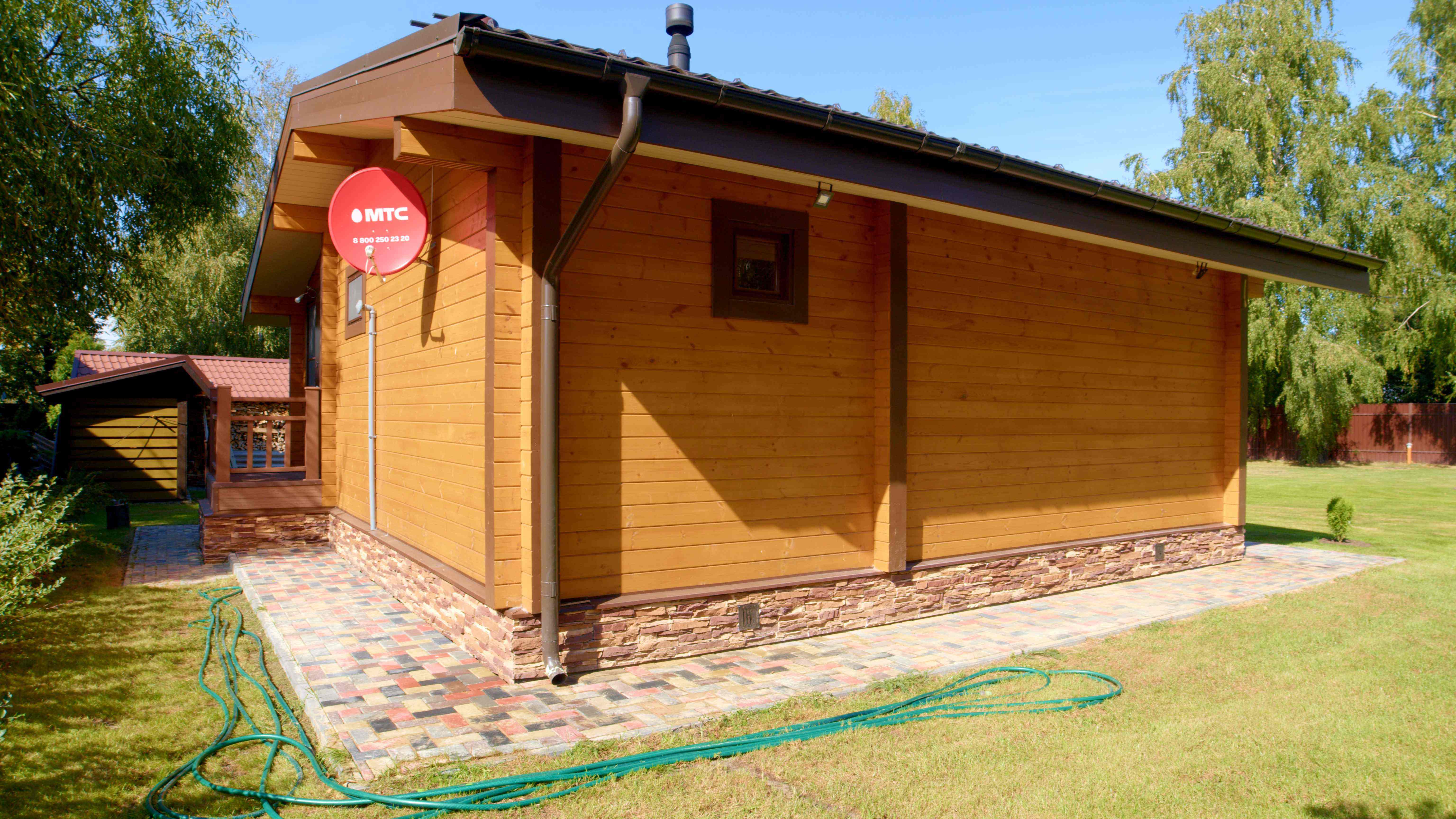От внешнего воздействия такого, как: снега, дождя, солнца, насекомых, плесени, грибков внешняя поверхность обработана специальным антисептиком длительного действия, он образует на поверхности бани эластичное воздухопроницаемое водоотталкивающее покрытие, которое обладает высокой стойкостью к атмосферным воздействиям.