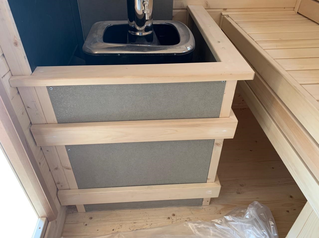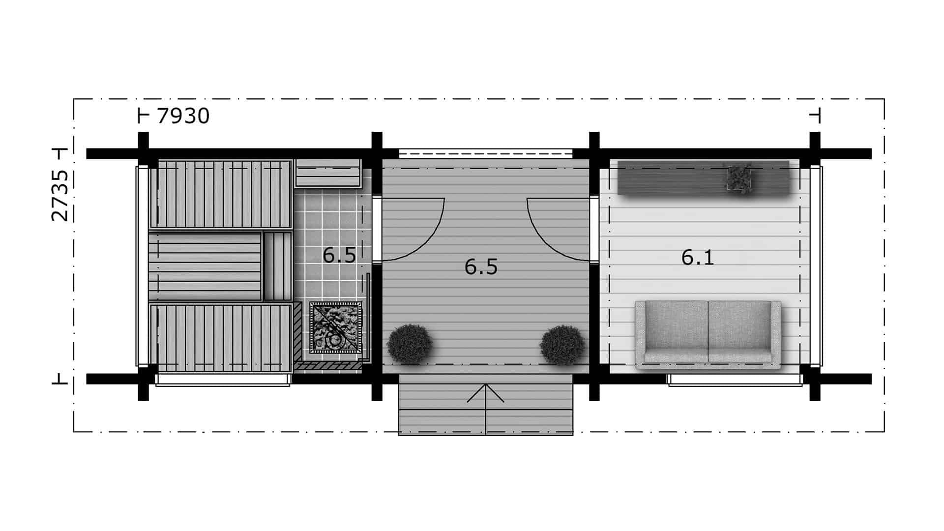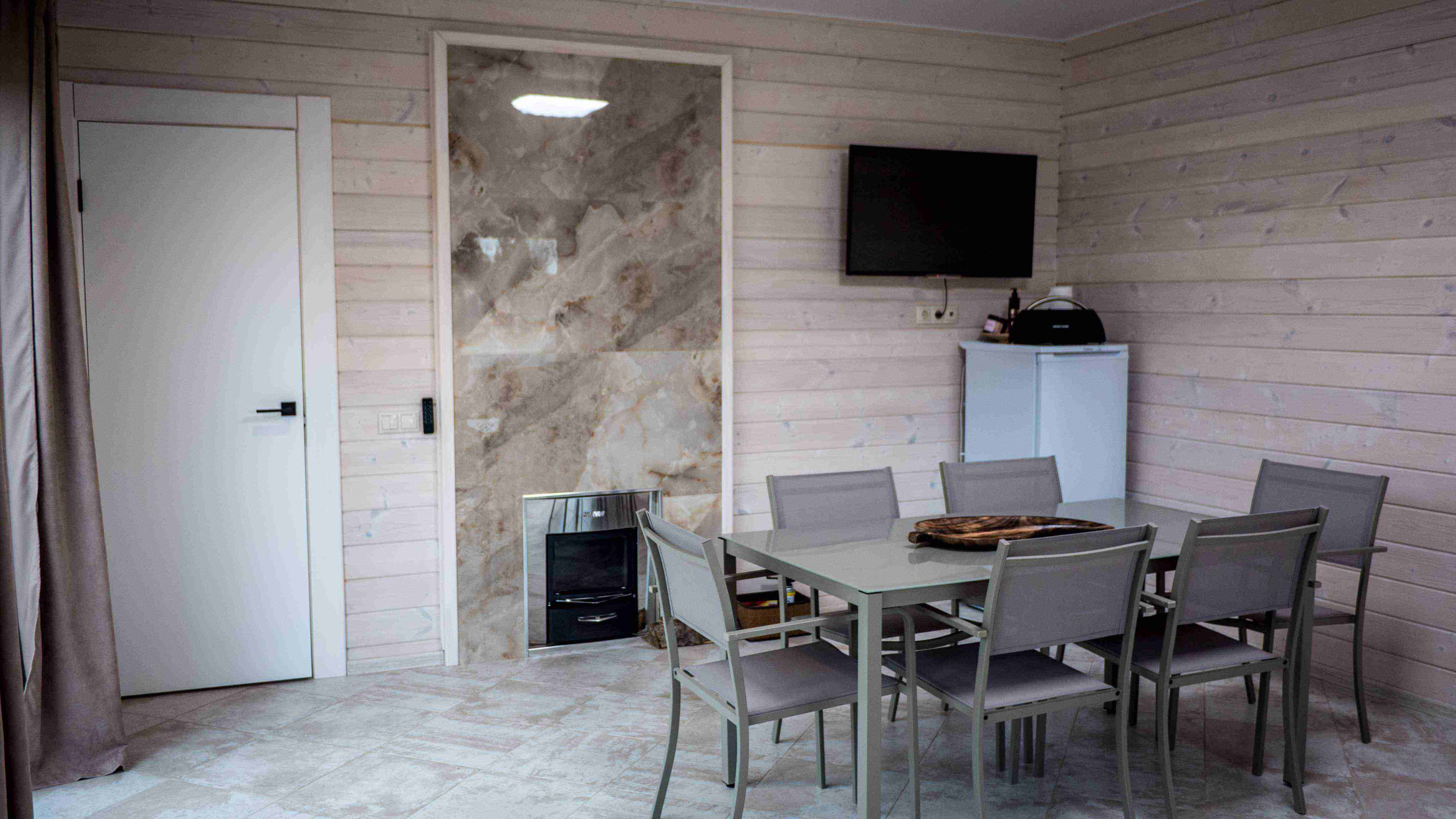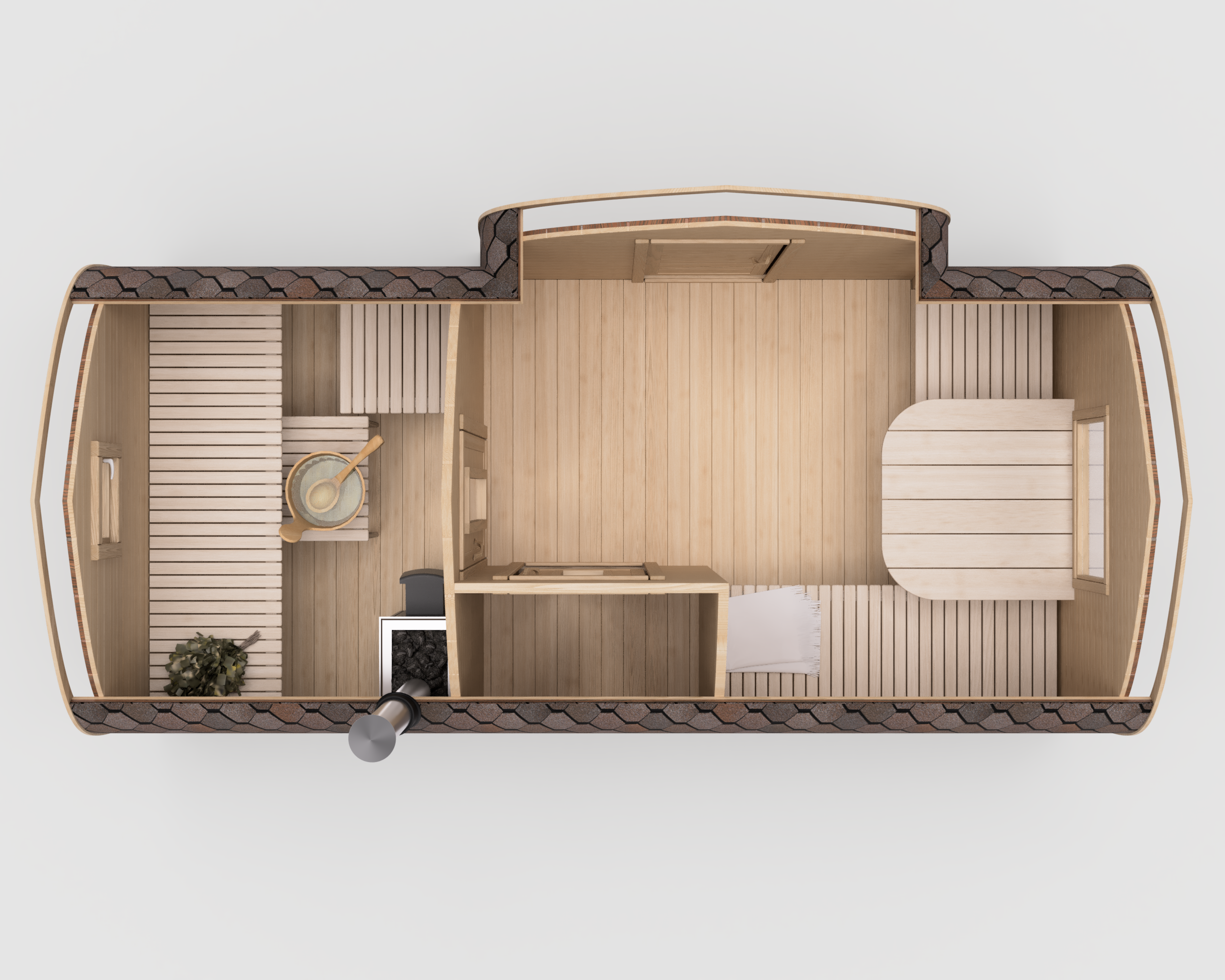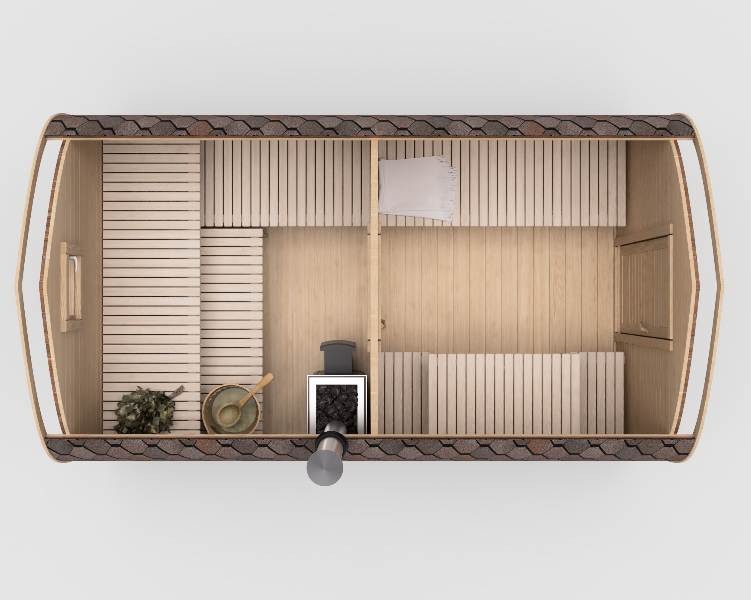 От внешнего воздействия такого, как: снега, дождя, солнца, насекомых, плесени, грибков внешняя поверхность обработана специальным антисептиком длительного действия, он образует на поверхности бани эластичное воздухопроницаемое водоотталкивающее покрытие, которое обладает высокой стойкостью к атмосферным воздействиям.