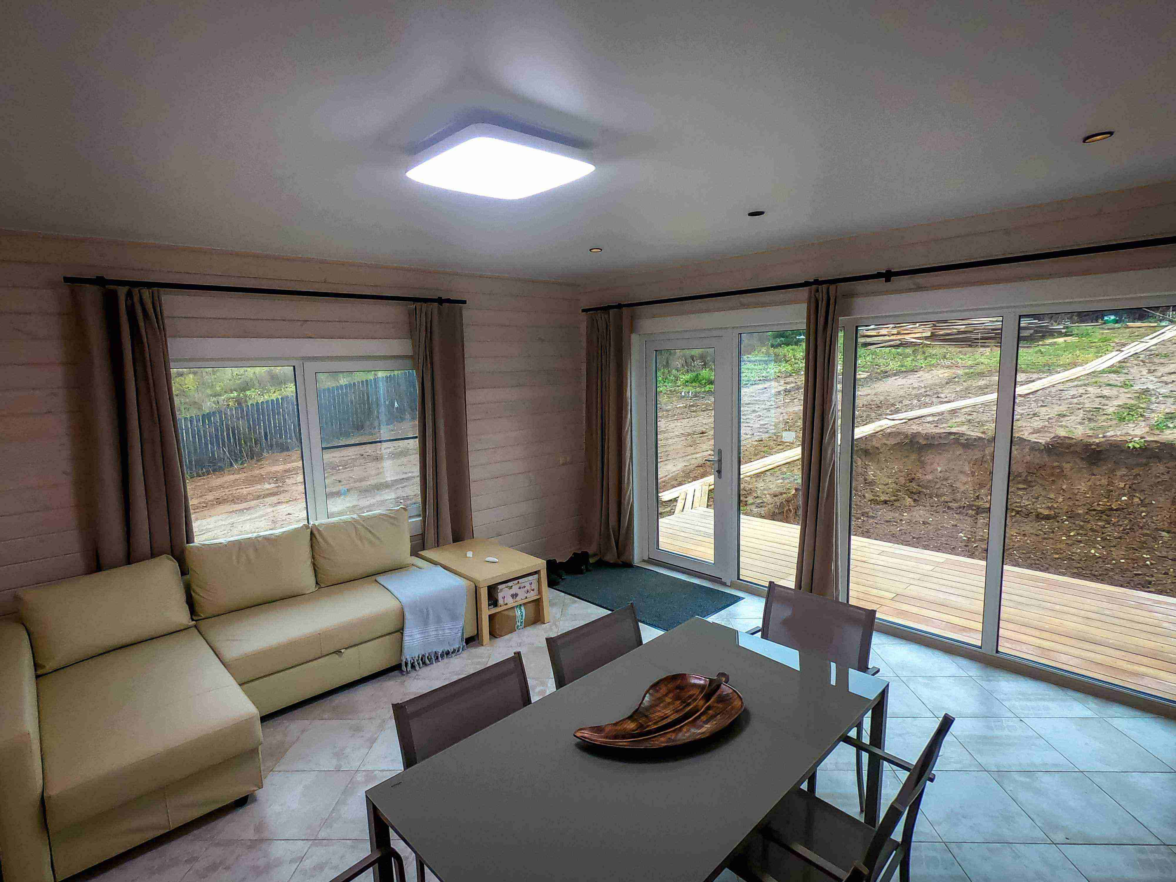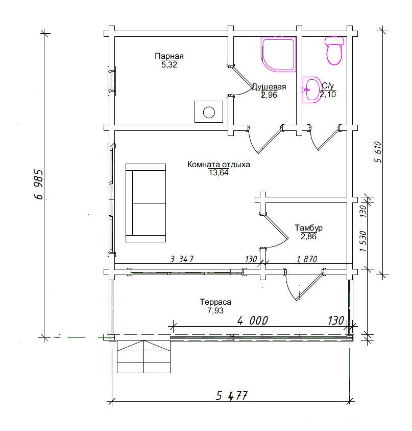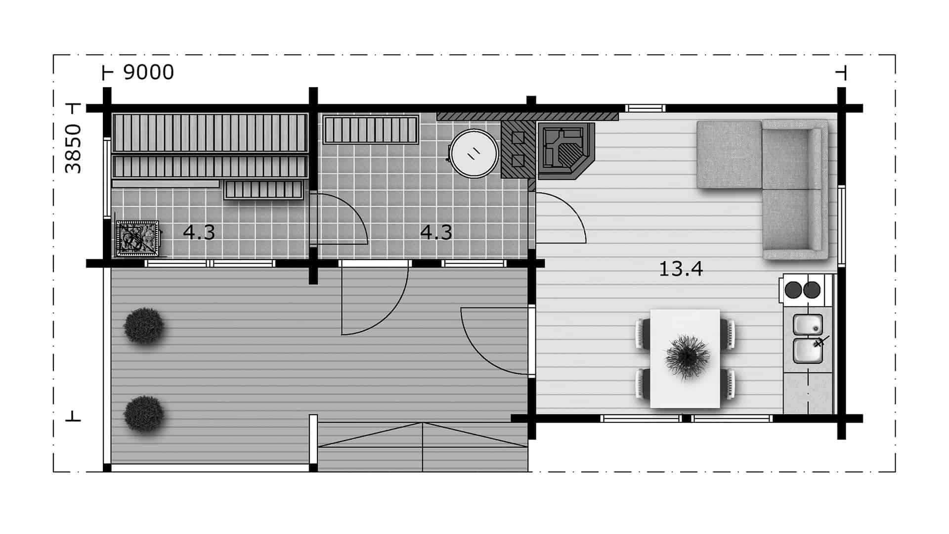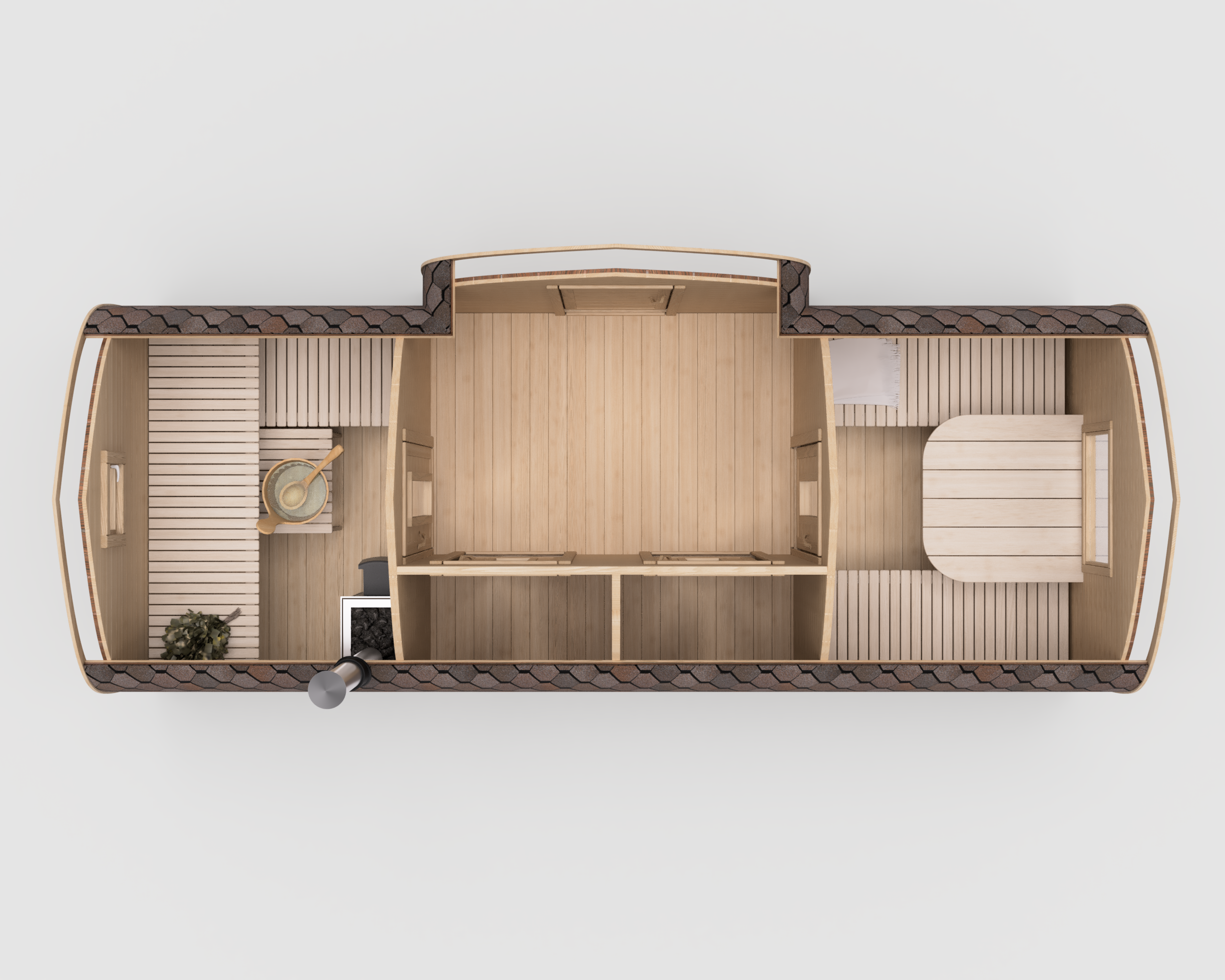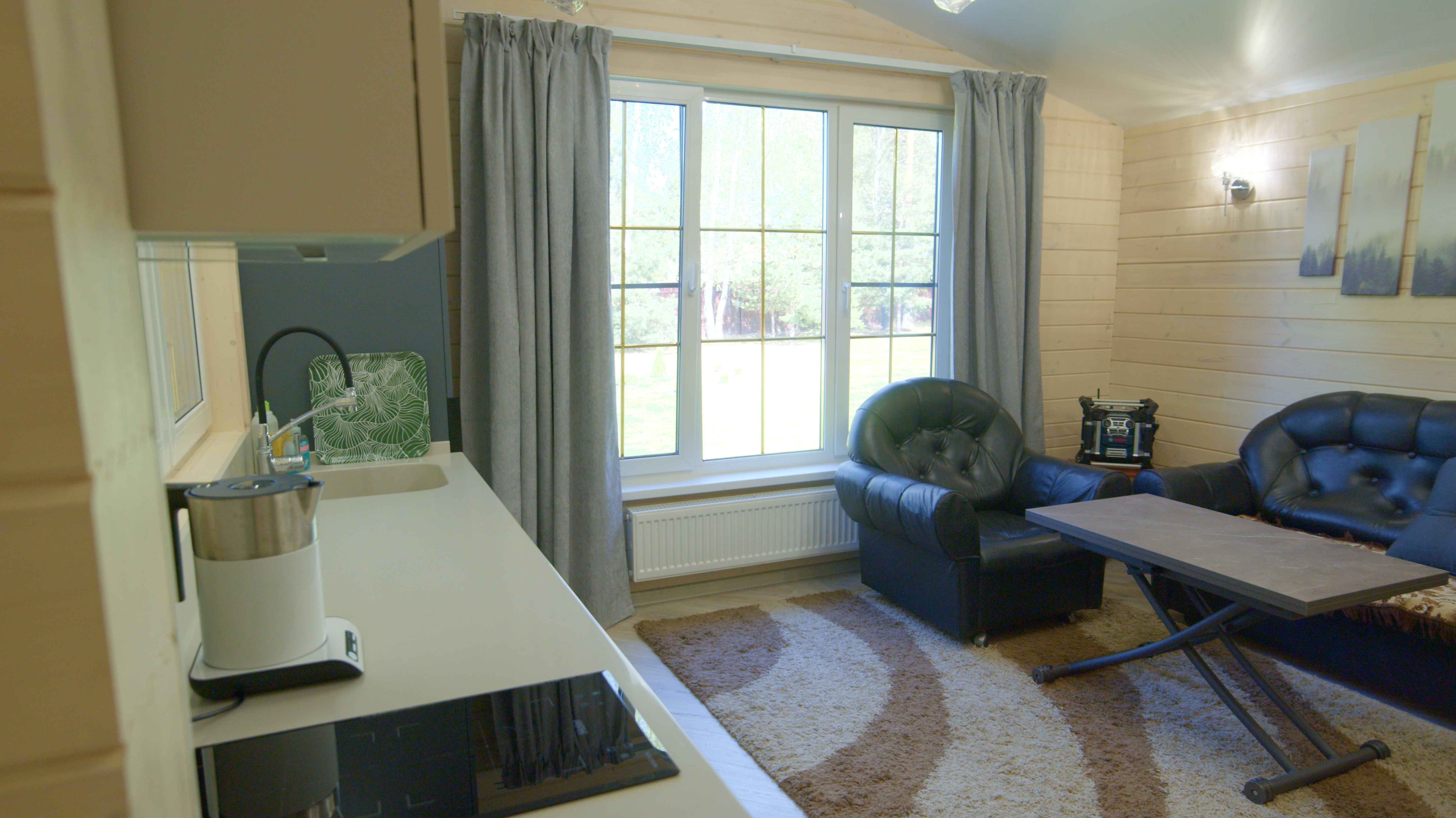 От внешнего воздействия такого, как: снега, дождя, солнца, насекомых, плесени, грибков внешняя поверхность обработана специальным антисептиком длительного действия, он образует на поверхности бани эластичное воздухопроницаемое водоотталкивающее покрытие, которое обладает высокой стойкостью к атмосферным воздействиям.